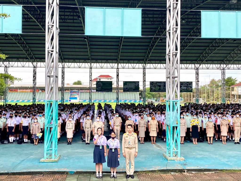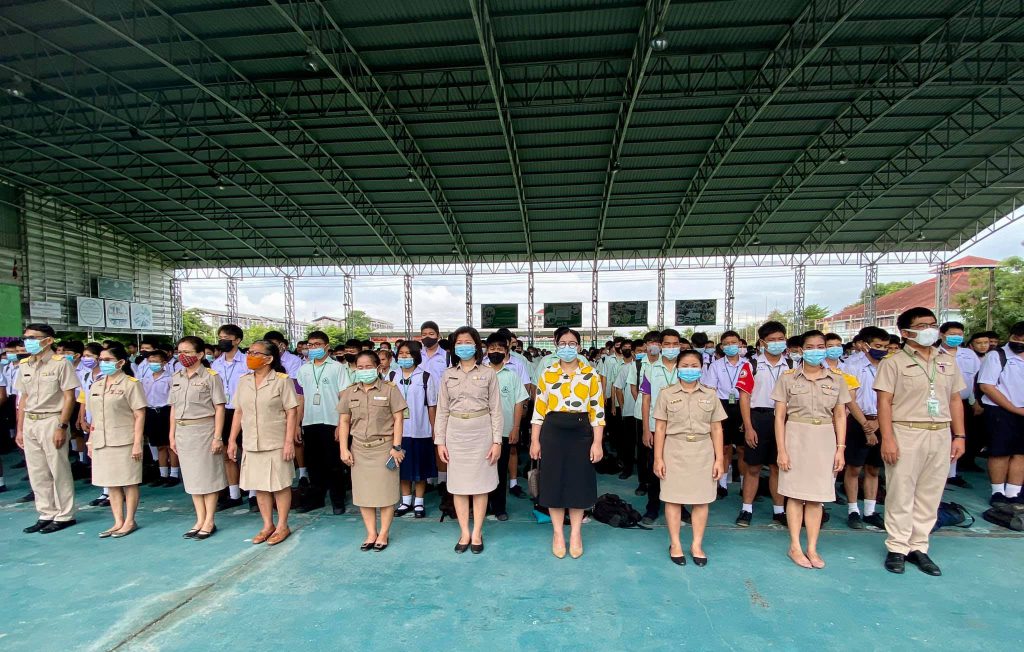 ผู้บริหารและคณะครูโรงเรียนพูลเจริญวิทยาคม ร่วมร้องเพลงชาติไทย