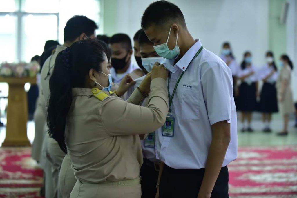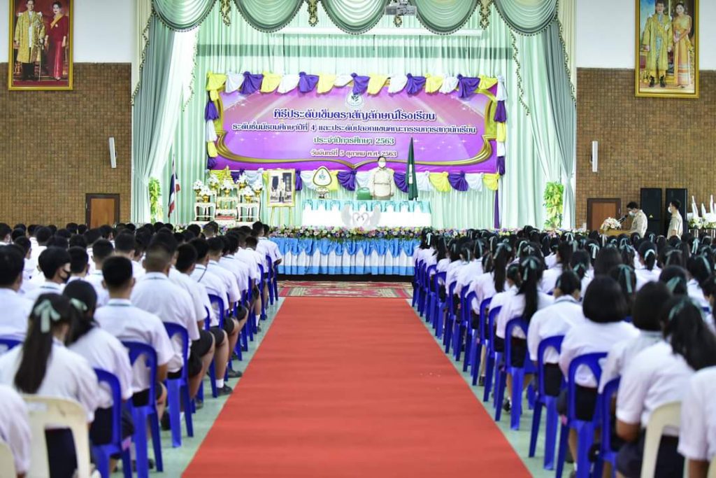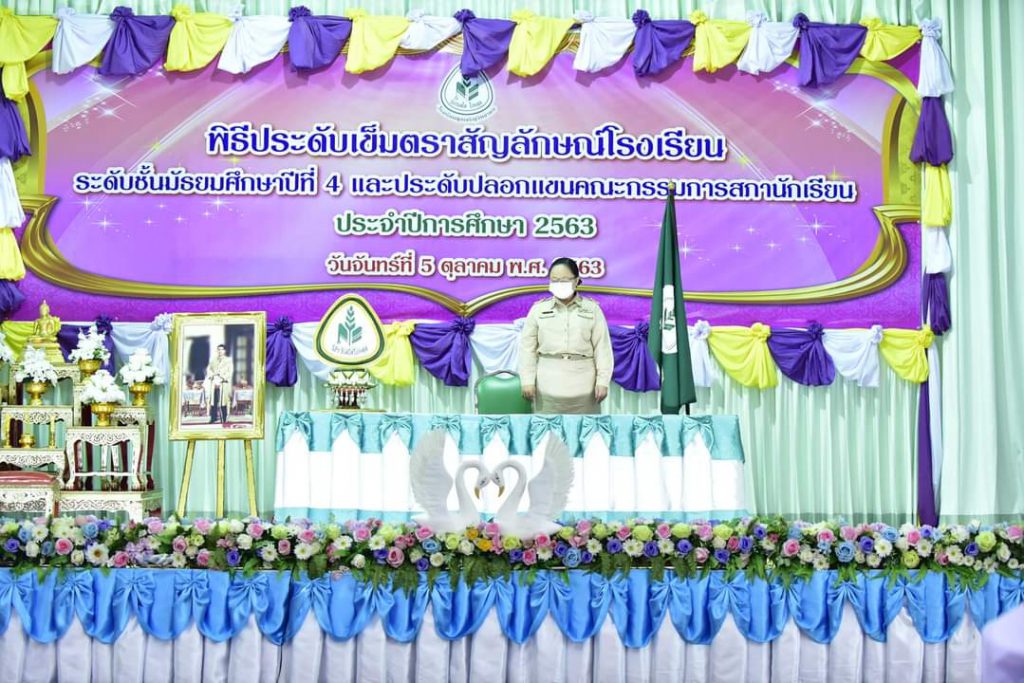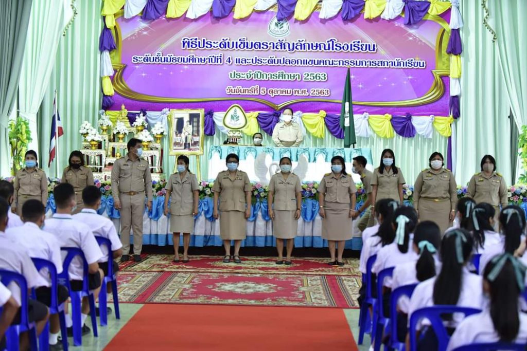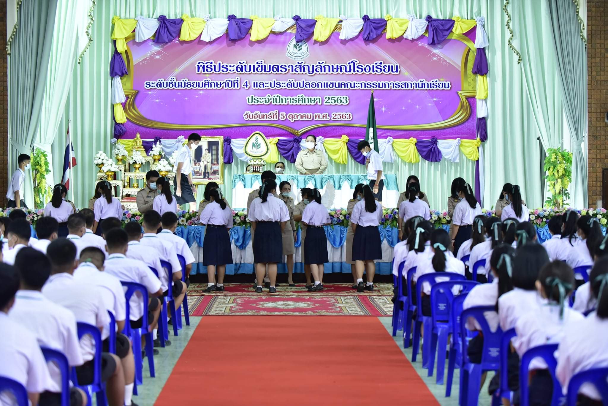 พิธีประดับเข็มตราสัญลักษณ์โรงเรียน นักเรียนชั้นมัธยมศึกษาปีที่ 4 และคณะกรรมการนักเรียน โรงเรียนพูลเจริญวิทยาคม ประจำปีการศึกษา 2563