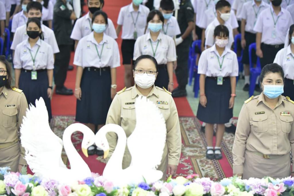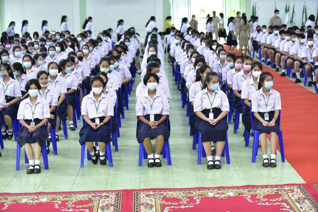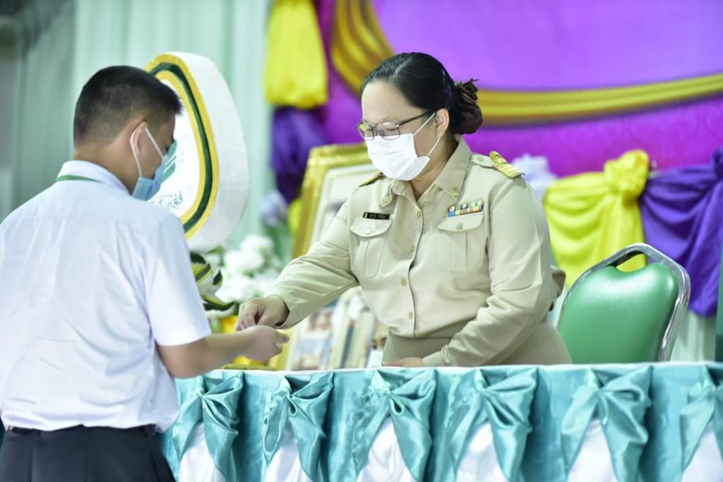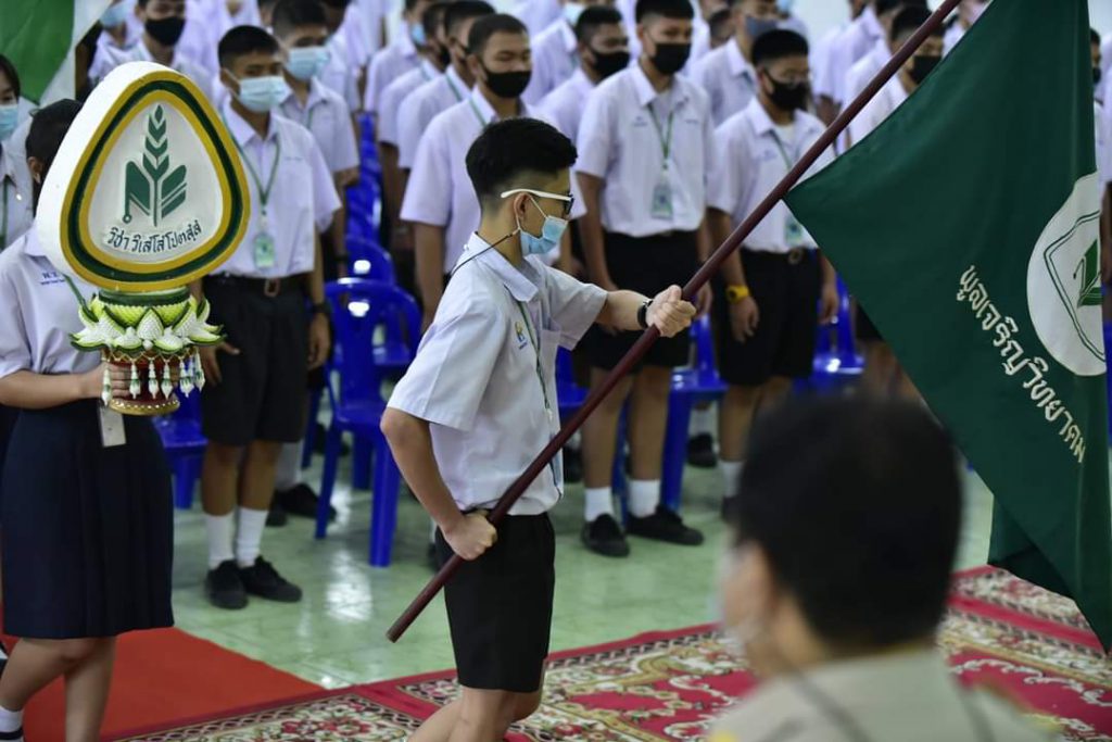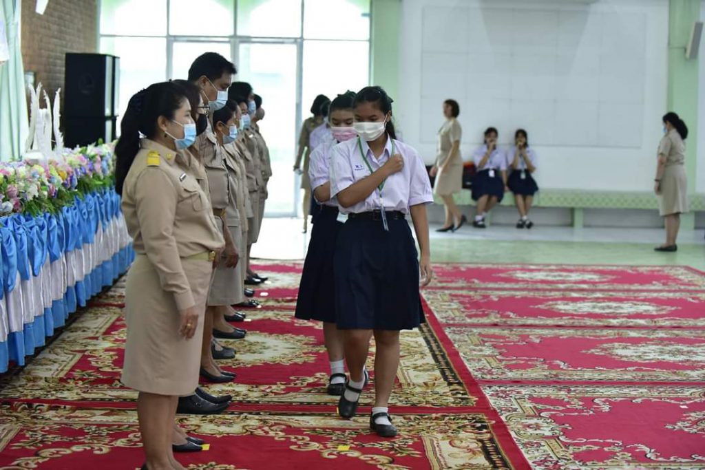 พิธีประดับเข็มตราสัญลักษณ์โรงเรียน นักเรียนชั้นมัธยมศึกษาปีที่ 4 และคณะกรรมการนักเรียน โรงเรียนพูลเจริญวิทยาคม ประจำปีการศึกษา 2563