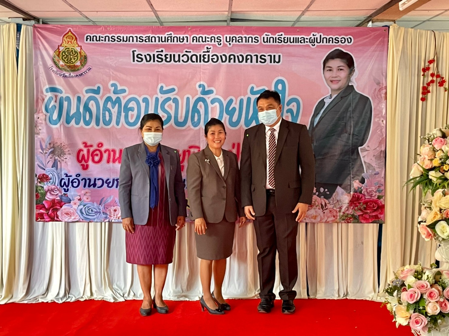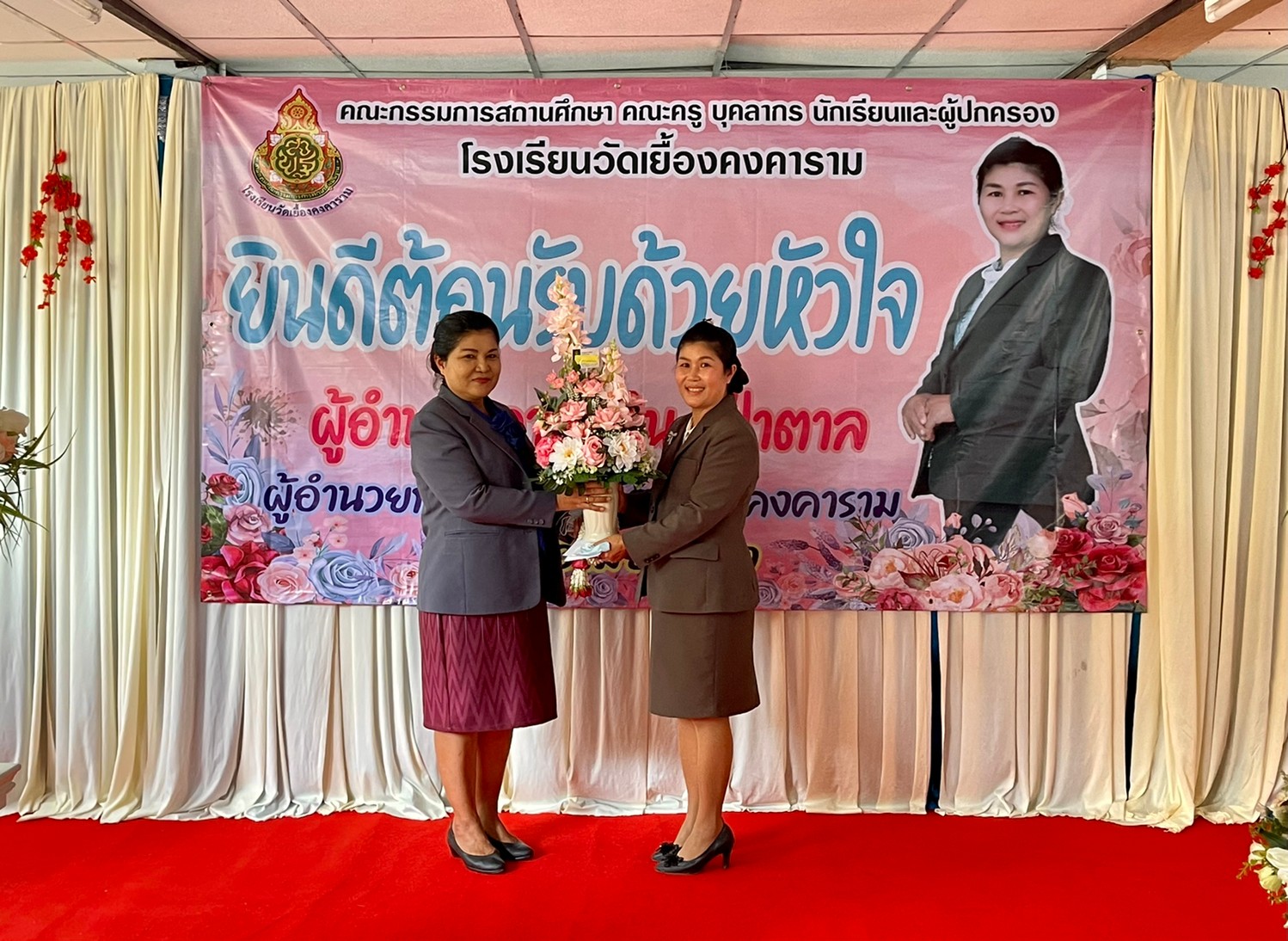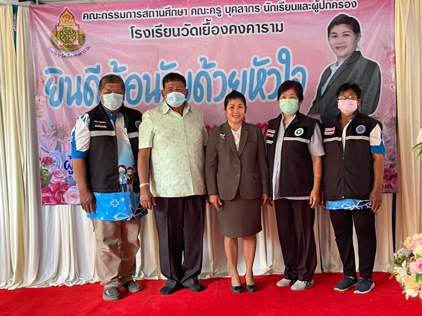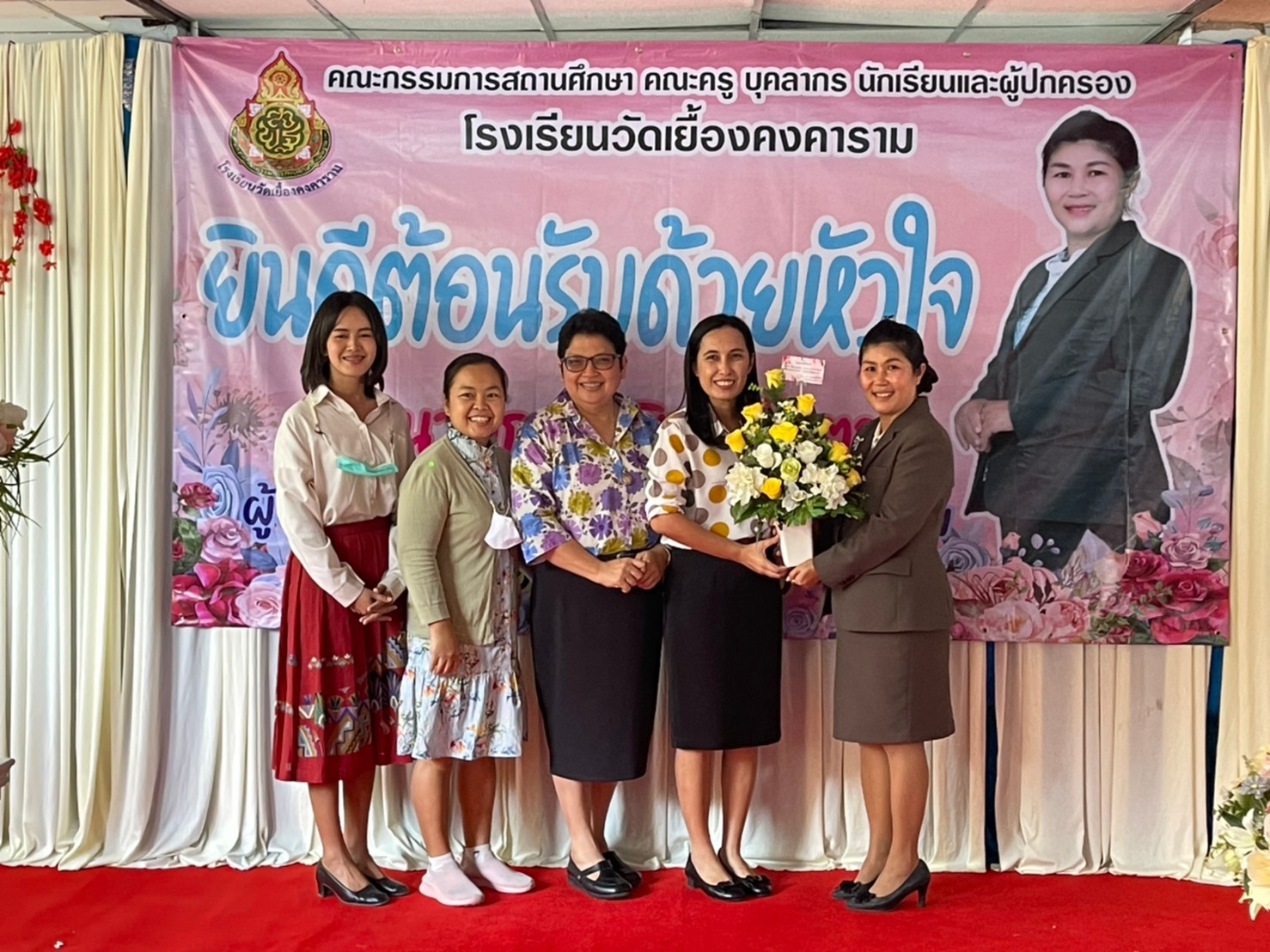 คณะผู้บริหาร ครู และบุคลากรทางการศึกษา โรงเรียนพูลเจริญวิทยาคม ร่วมแสดงความยินดีกับผู้อำนวยการยุพิน ป่าตาล ผู้อำนวยการโรงเรียนวัดเยื้องคงคาราม จังหวัดอ่างทอง