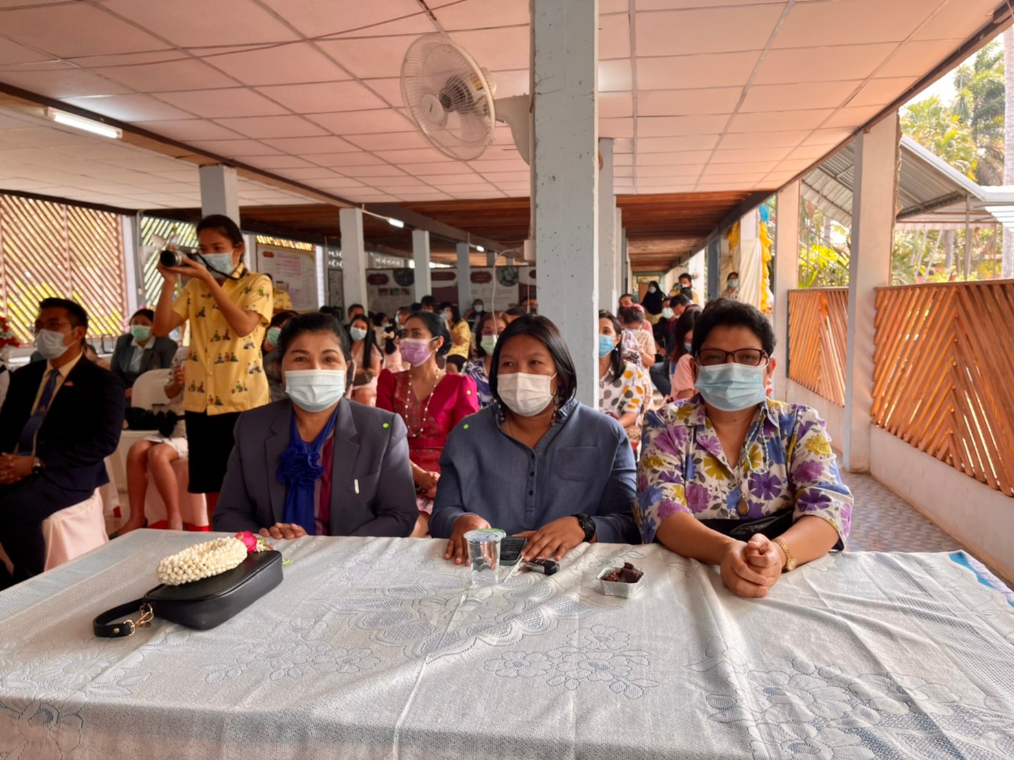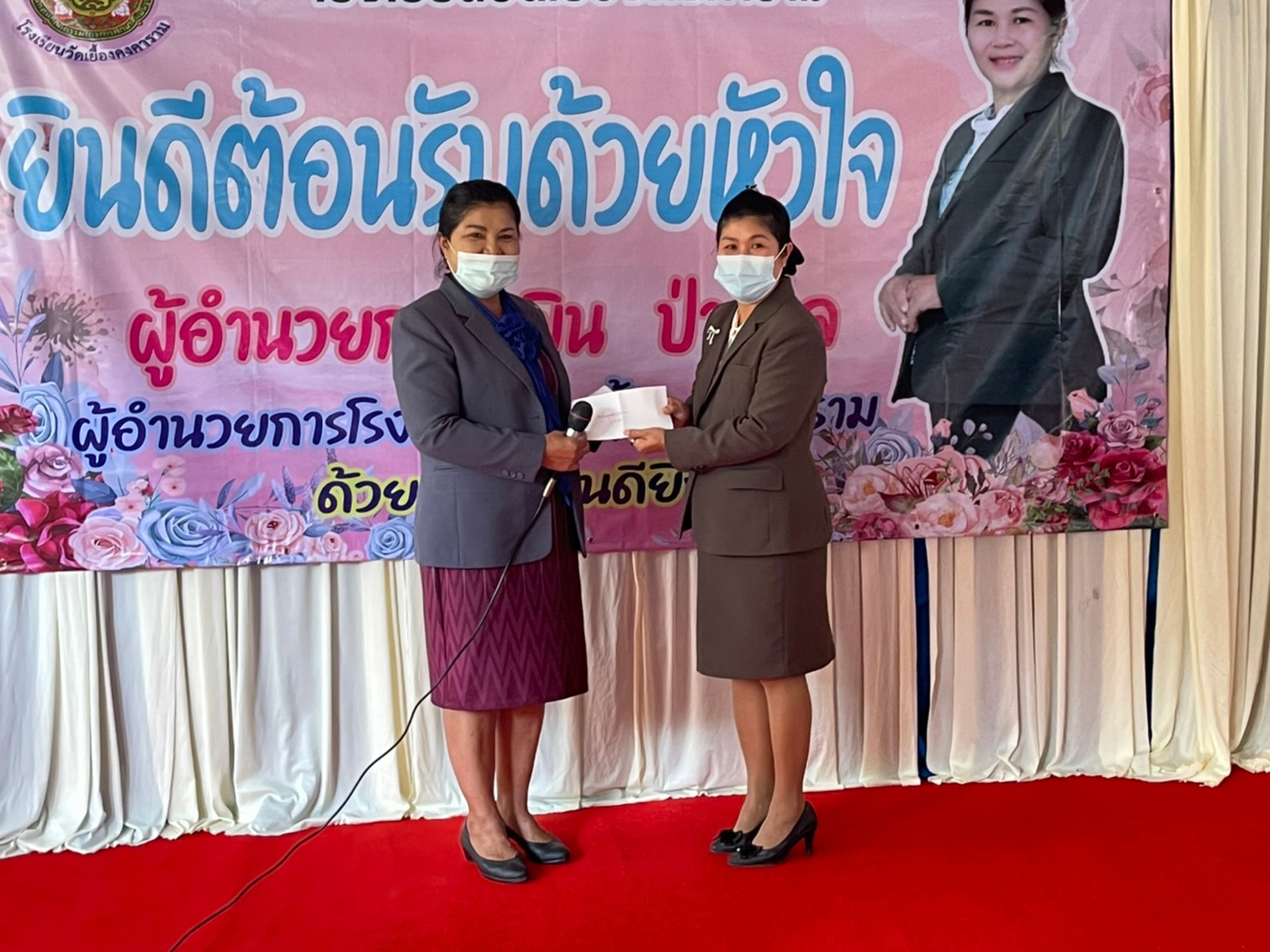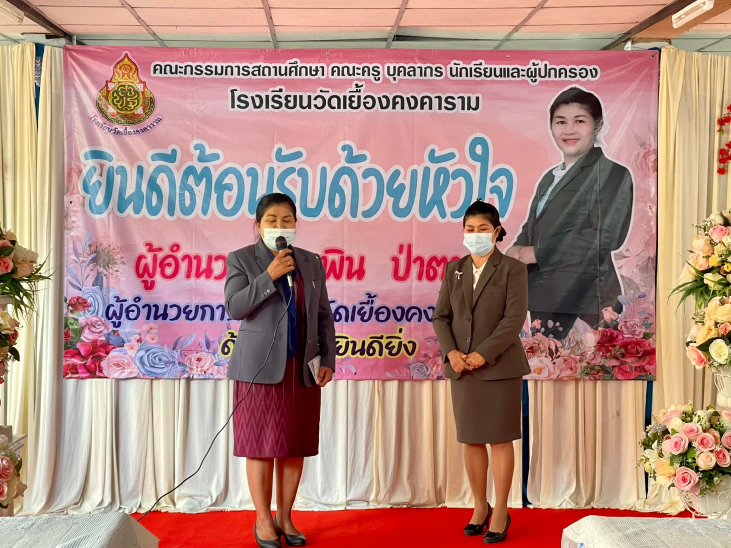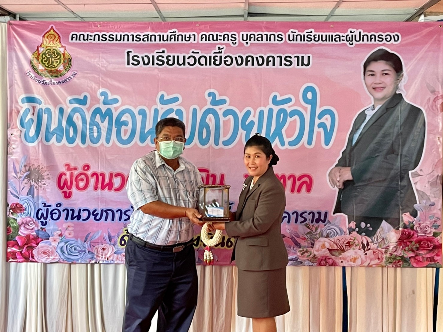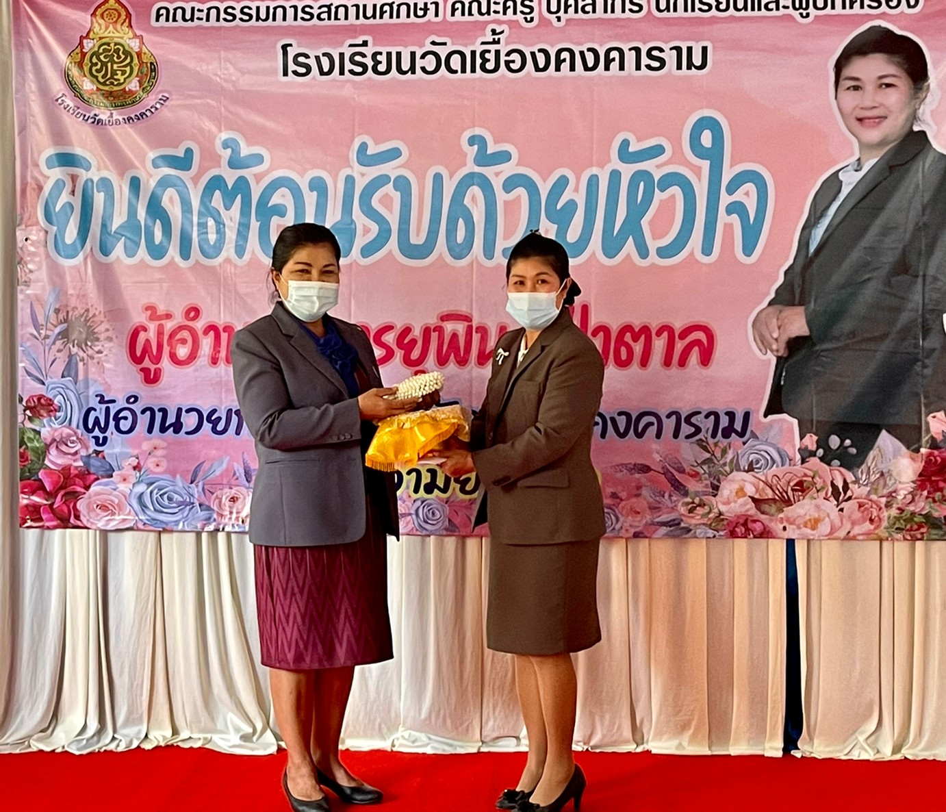 คณะผู้บริหาร ครู และบุคลากรทางการศึกษา โรงเรียนพูลเจริญวิทยาคม ร่วมแสดงความยินดีกับผู้อำนวยการยุพิน ป่าตาล ผู้อำนวยการโรงเรียนวัดเยื้องคงคาราม จังหวัดอ่างทอง