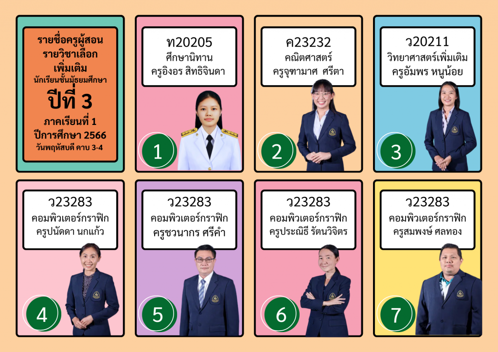 คำอธิบายรายวิชา-วิชาเพิ่มเติม-ม.3-66ดาวน์โหลด ลงทะเบียนเลือกวิชาเรียนที่นี่ (ปิดระบบการลงทะเบียนแล้ว) 📢 ประกาศรายชื่อนักเรียน 📢 ประกาศรายชื่อ-ม.3ดาวน์โหลด แนะแนวเรื่อง การปฐมนิเทศนักเรียนระดับชั้นมัธยมศึกษาปีที่ 1 และชั้นมัธยมศึกษาปีที่ 4 ประจำปีการศึกษา 2566 ประชาสัมพันธ์รายวิชาเลือกเสรี ม.2