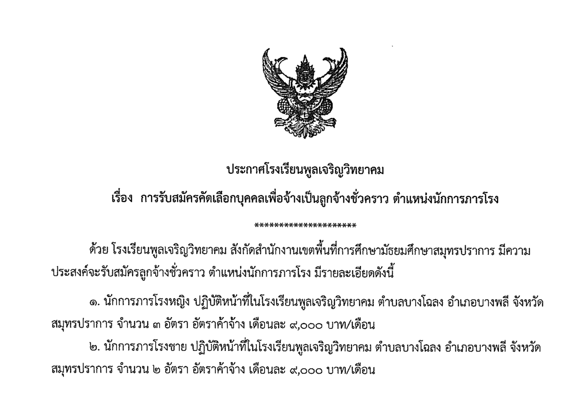 ดาวน์โหลดเอกสารได้ที่นี่ แนะแนวเรื่อง ประกาศโรงเรียนพูลเจริญวิทยาคม เรื่อง การรับสมัครคัดเลือกบุคคลเพื่อจ้างเป็นลูกจ้างชั่วคราว ตำแหน่ง พนักงานขับรถ ตลาดนัดเพื่ออาชีพ ภาคเรียนที่ 1 ปีการศึกษา 2566 ครั้งที่ 1