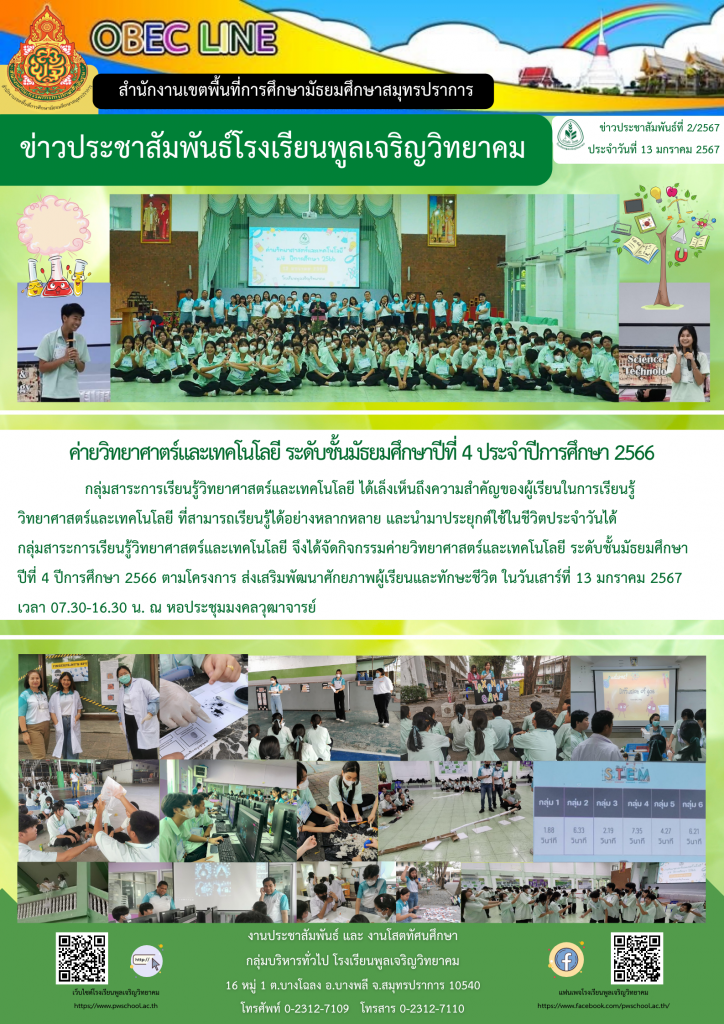 ค่ายวิทยาศาตร์และเทคโนโลยี ระดับชั้นมัธยมศึกษาปีที่ 4 ประจำปีการศึกษา 2566