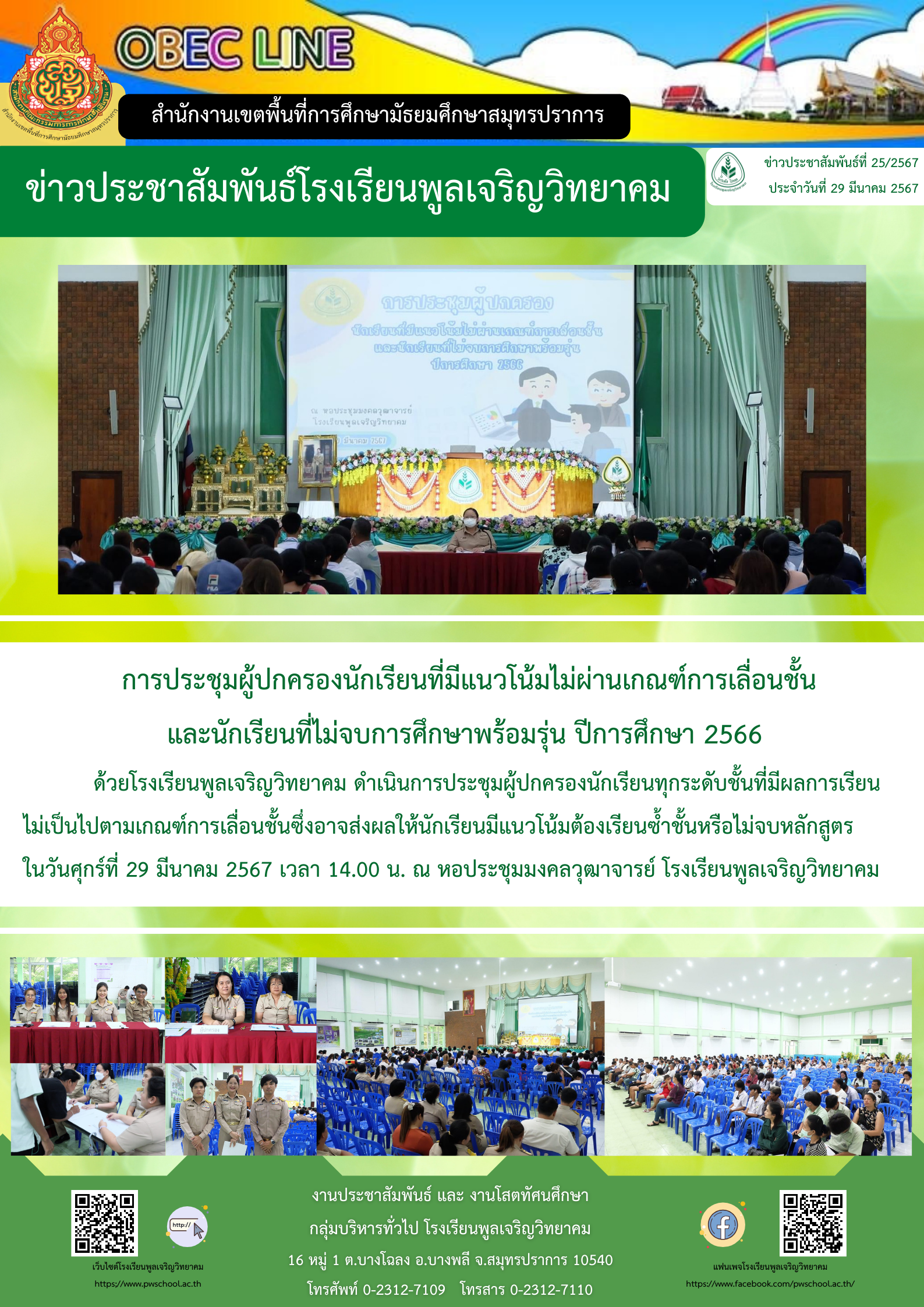 การประชุมผู้ปกครองนักเรียนที่มีแนวโน้มไม่ผ่านเกณฑ์การเลื่อนชั้น