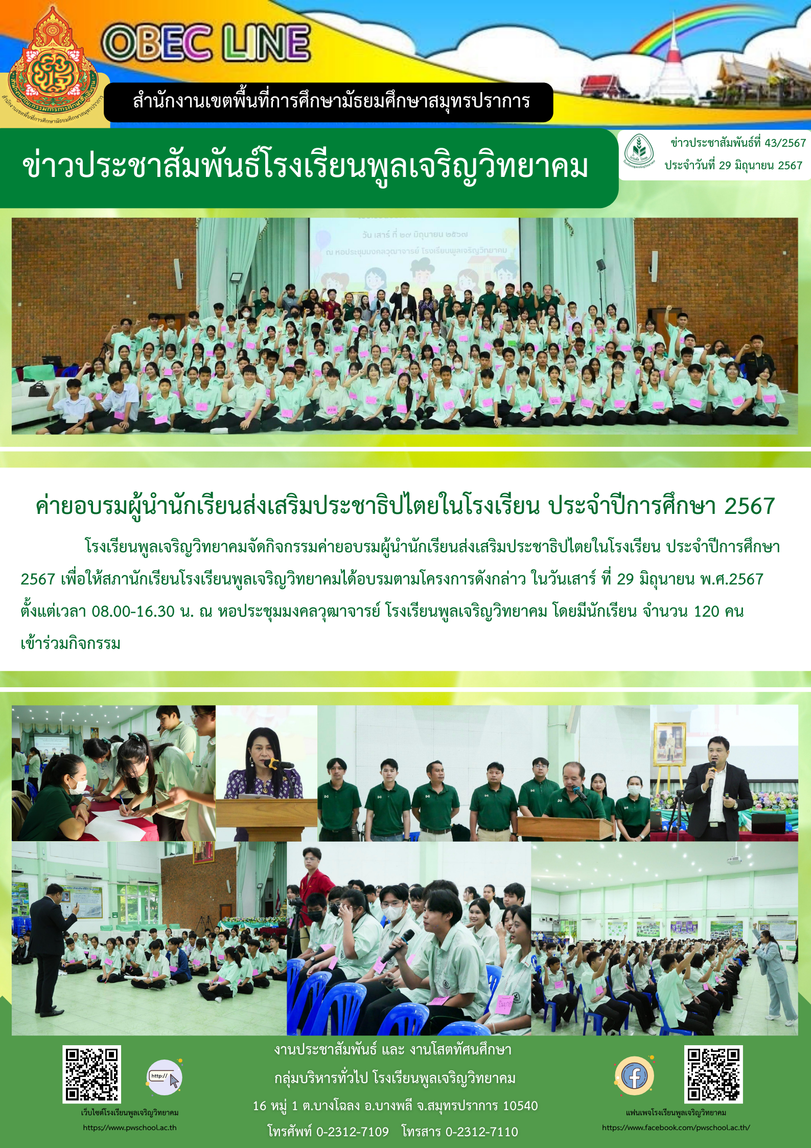 ติดตามข่าวสารสภานักเรียนได้ที่แฟนเพจสภานักเรียนโรงเรียนพูลเจริญวิทยาคม