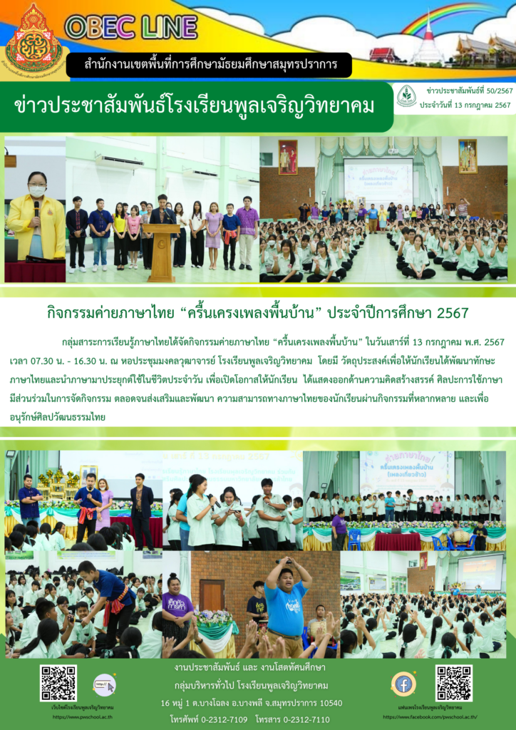 กิจกรรมค่ายภาษาไทย “ครื้นเครงเพลงพื้นบ้าน” ประจำปีการศึกษา 2567