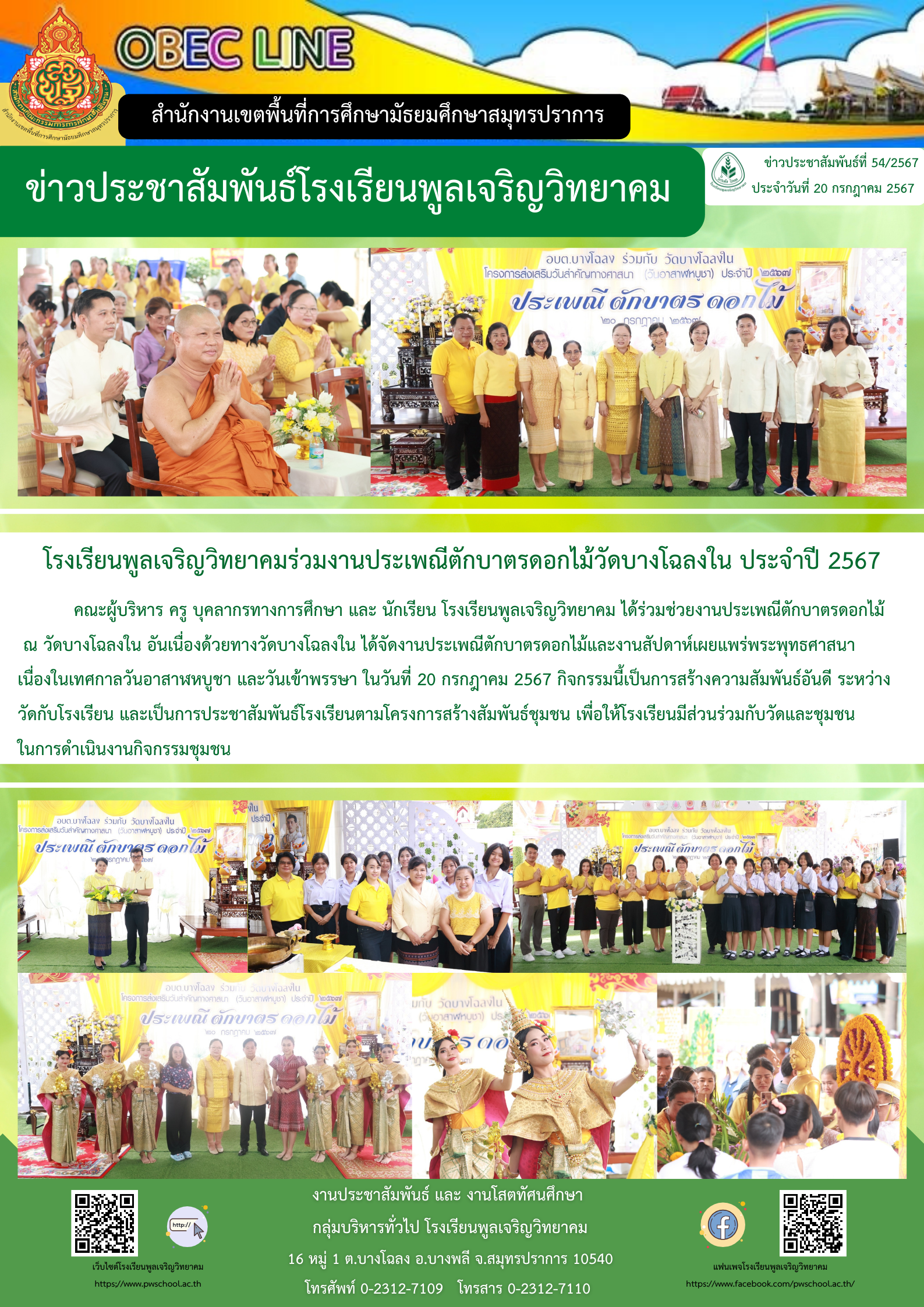 โรงเรียนพูลเจริญวิทยาคมร่วมประเพณีตักบาตรดอกไม้ ณ วัดบางโฉลงใน