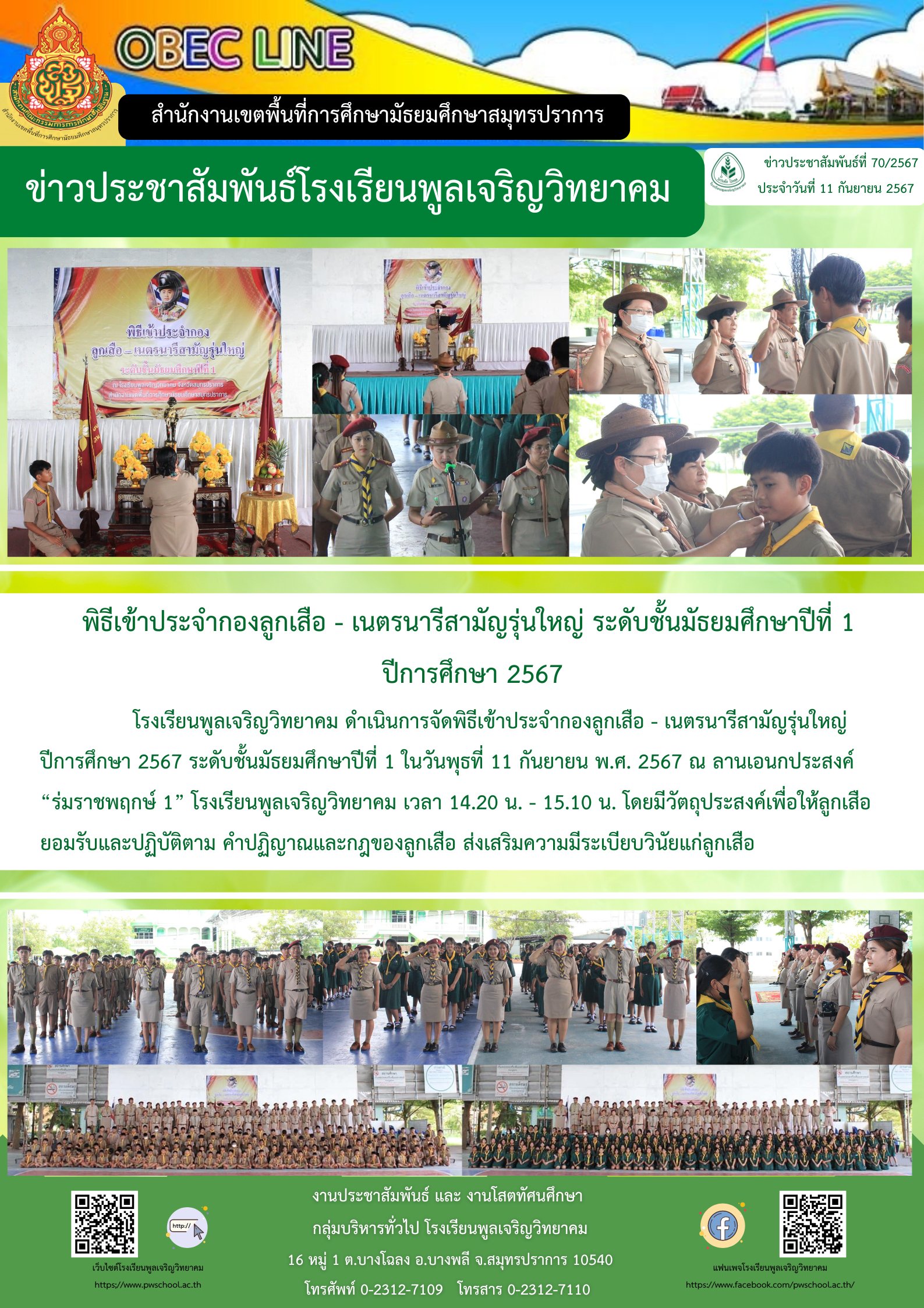 พิธีเข้าประจำกองลูกเสือ – เนตรนารีสามัญรุ่นใหญ่ ระดับชั้นมัธยมศึกษาปีที่ 1