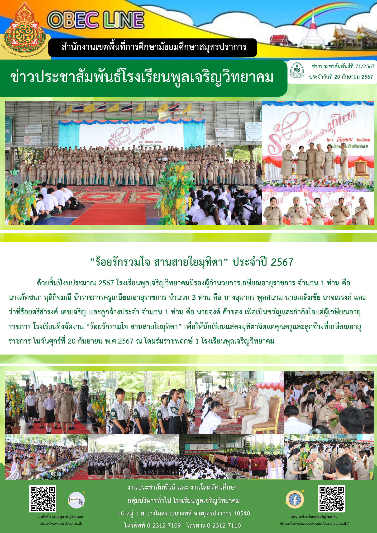 วีดิโอบรรยากาศงาน “ร้อยรักรวมใจ สานสายใยมุทิตา“ ประจำปี 2567 https://youtube.com/playlist?list=PLxSVZJaTINEFJriYJqZ3hwdNyyrw-NOXm&si=hPsR_k7z8mCPUTwi