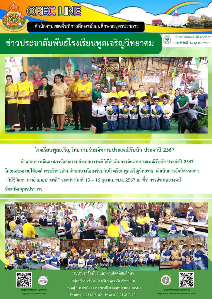 โรงเรียนพูลเจริญวิทยาคมร่วมจัดงานประเพณีรับบัว ประจำปี 2567