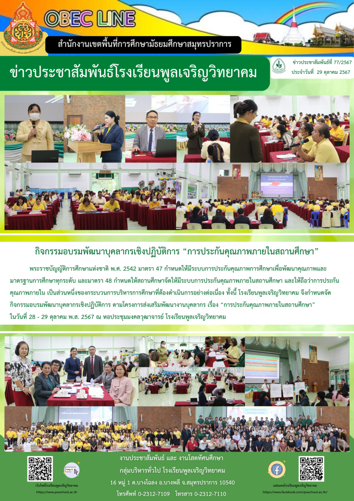 กิจกรรมอบรมพัฒนาบุคลากรเชิงปฏิบัติการ “การประกันคุณภาพภายในสถานศึกษา”