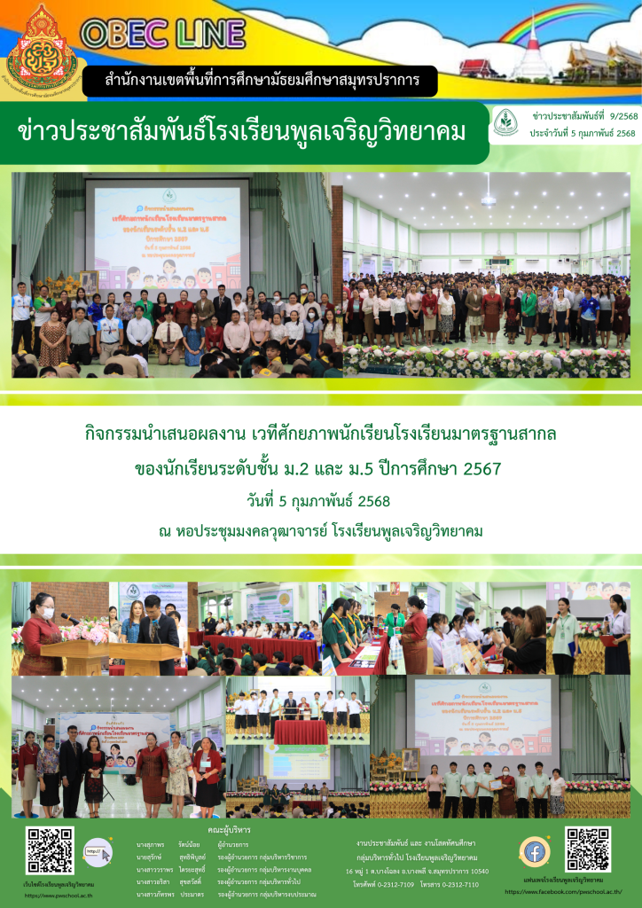 วันที่ 5 กุมภาพันธ์ 2568 ณ หอประชุมมงคลวุฒาจารย์ โรงเรียนพูลเจริญวิทยาคม