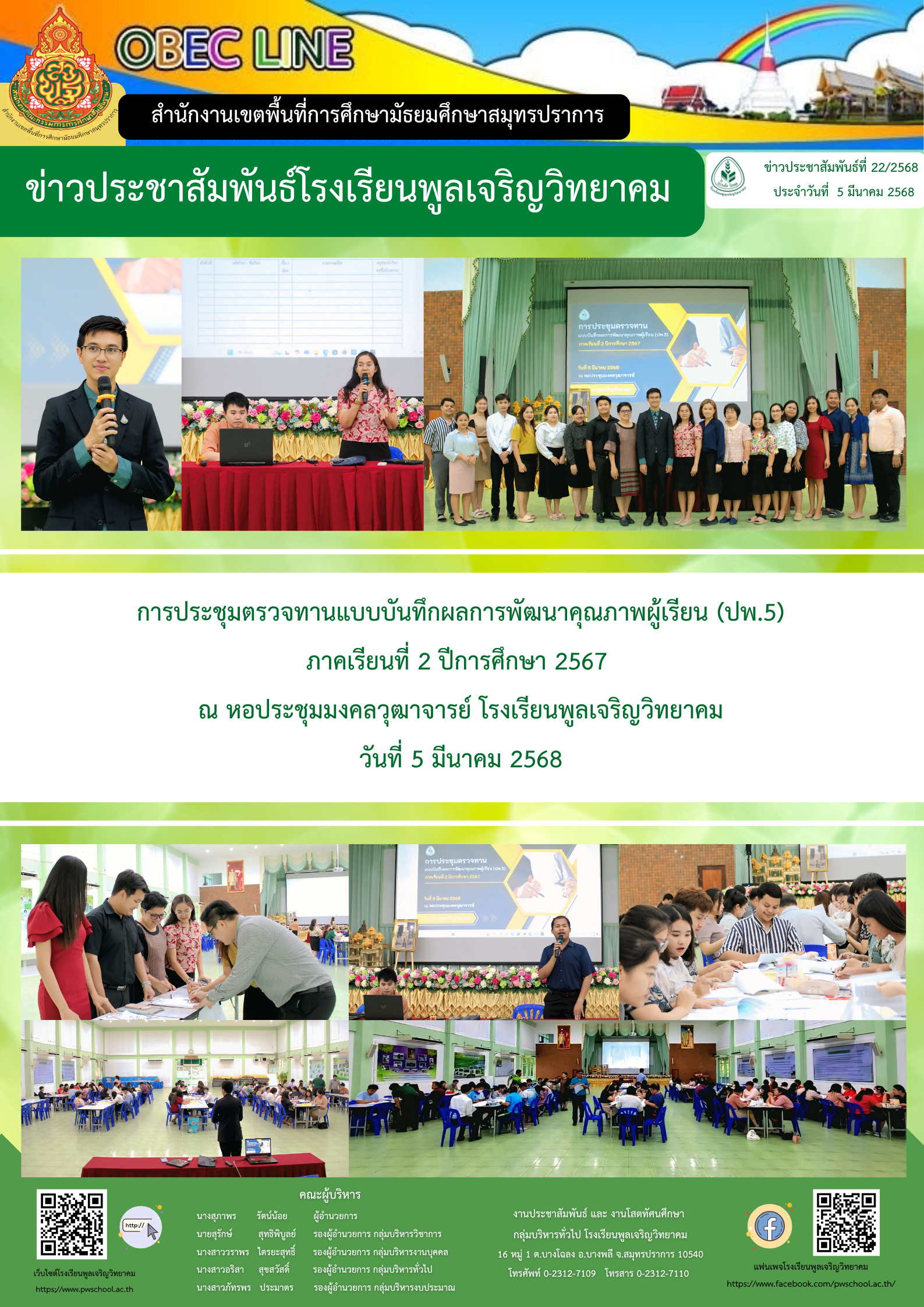 ณ หอประชุมมงคลวุฒาจารย์ โรงเรียนพูลเจริญวิทยาคม