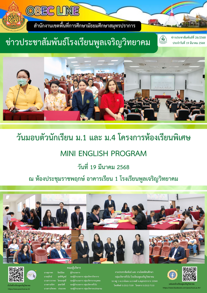 ติดตามข่าวห้องเรียนพิเศษ MEP ได้ที่แฟนเพจ MEP Poolcharoenwitthayakhom School