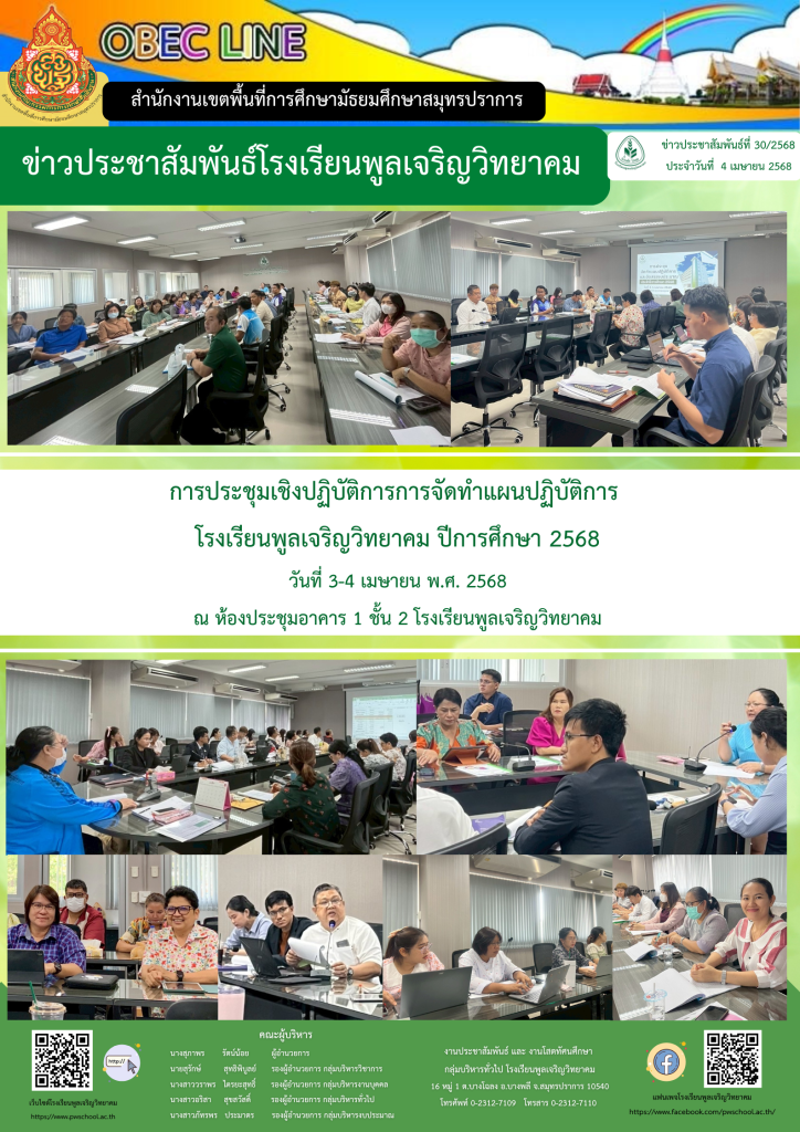 การประชุมเชิงปฏิบัติการการจัดทำแผนปฏิบัติการ โรงเรียนพูลเจริญวิทยาคม ปีการศึกษา 2568