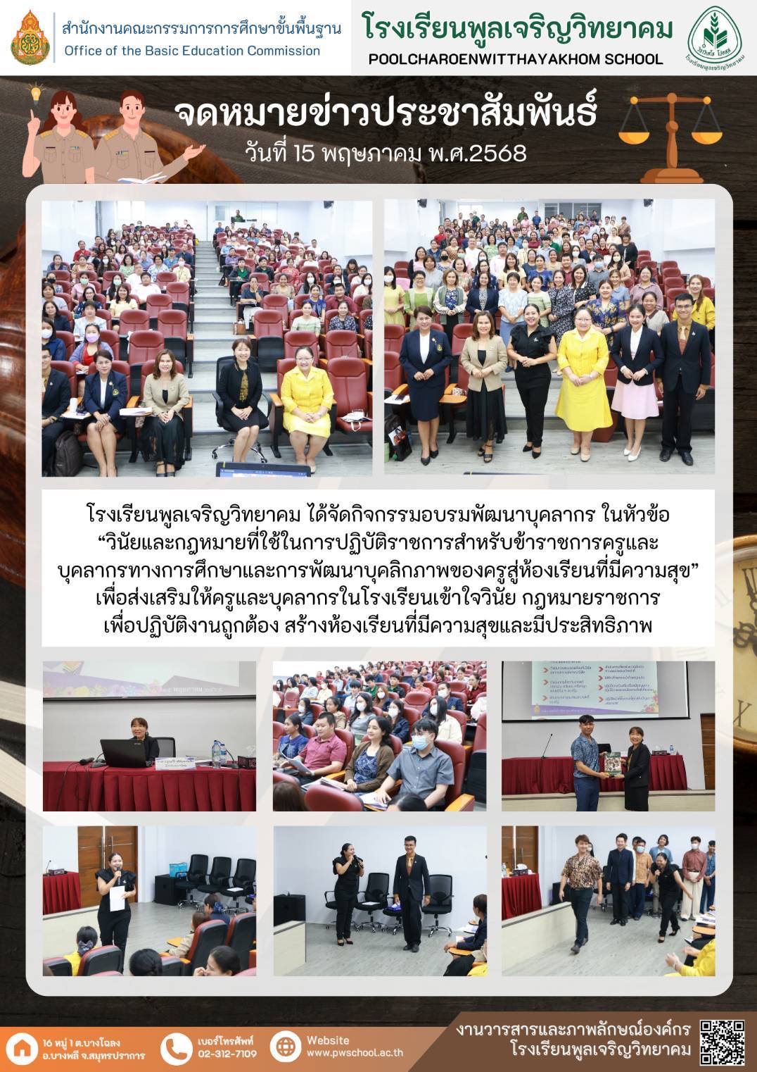 ณ หอประชุมมงคลวุฒาจารย์ โรงเรียนพูลเจริญวิทยาคม