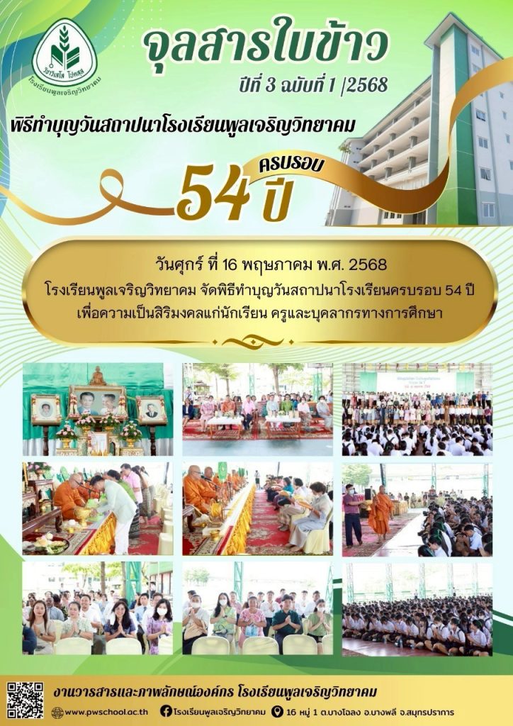 จุลสารใบข้าว ปีที่ 3 ฉบับที่ 49/2568 พูลเจริญนิทรรศน์ “เรียนดี มีคุณธรรม” ประจำปีการศึกษา 2568
