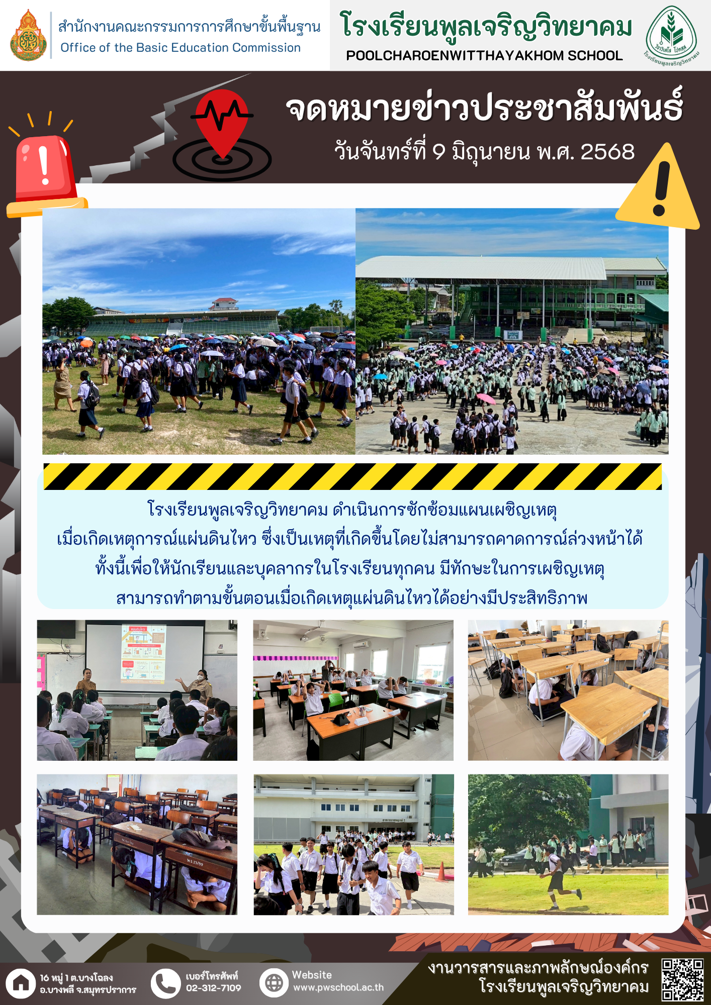 โรงเรียนพูลเจริญวิทยาคมดำเนินการซักซ้อมแผนเผชิญเหตุ