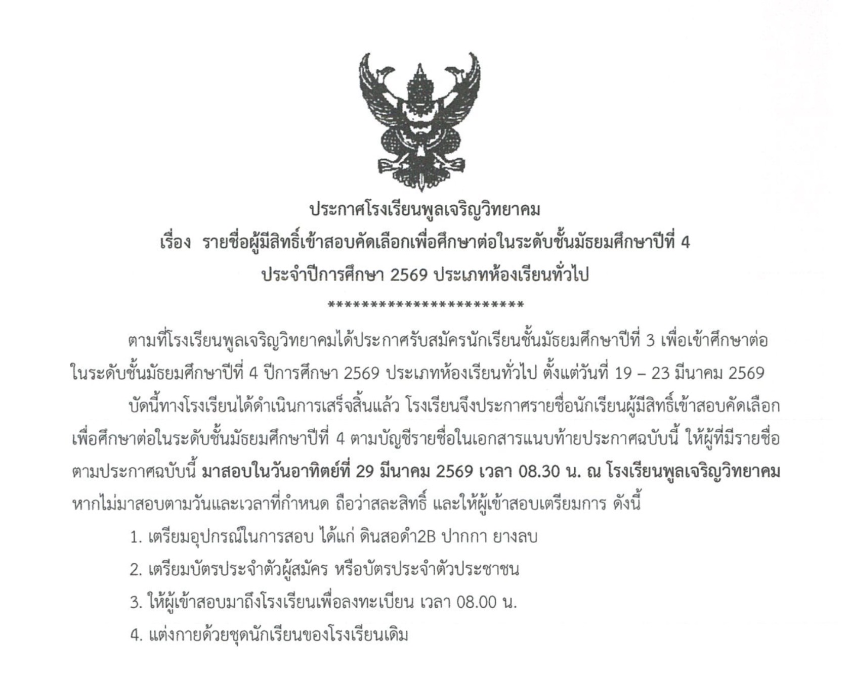 ประกาศโรงเรียนพูลเจริญวิทยาคม