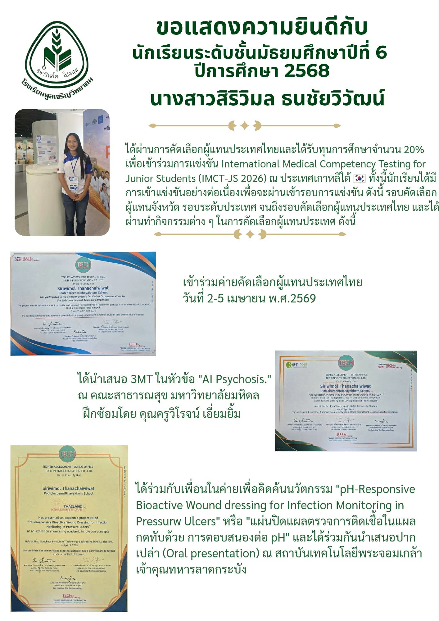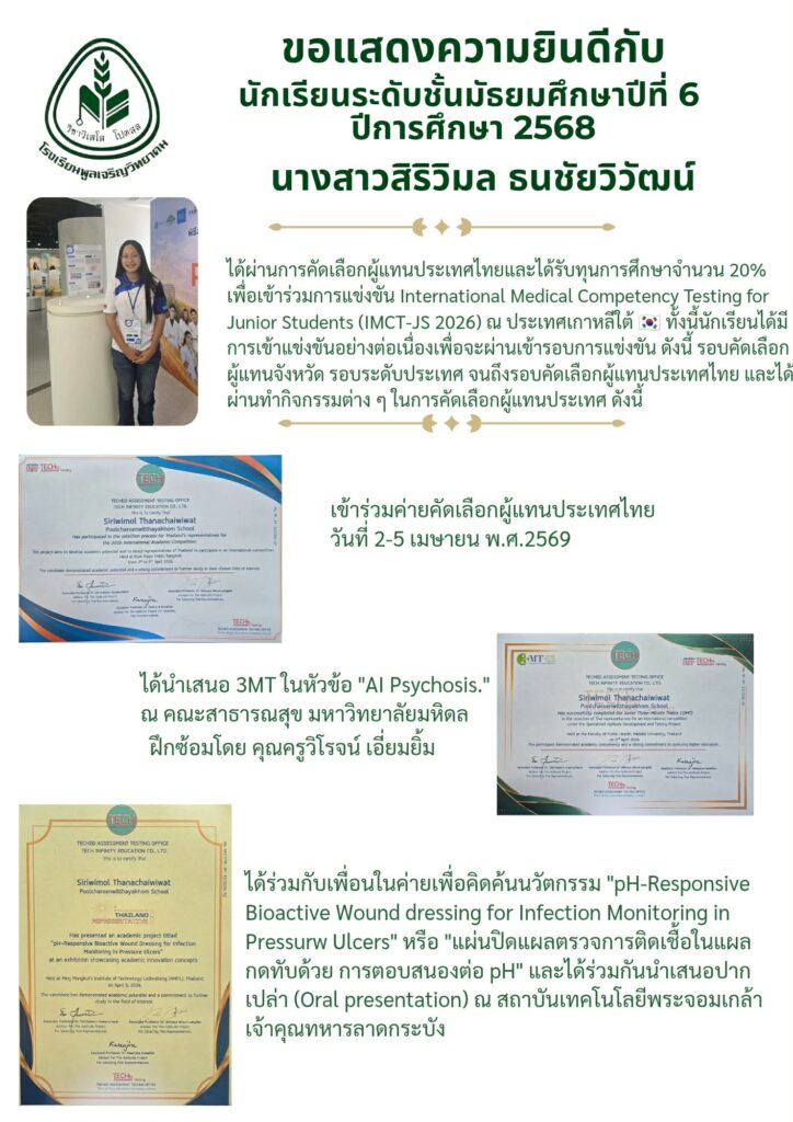 เพื่อมุ่งเน้นเส้นทางการศึกษาต่อในอนาคต แม้จะไม่ได้เข้าร่วมการแข่งขันในครั้งนี้ แต่ความมุ่งมั่นและความสามารถ ยังคงเป็นความภาคภูมิใจของโรงเรียนเสมอ 💚✨