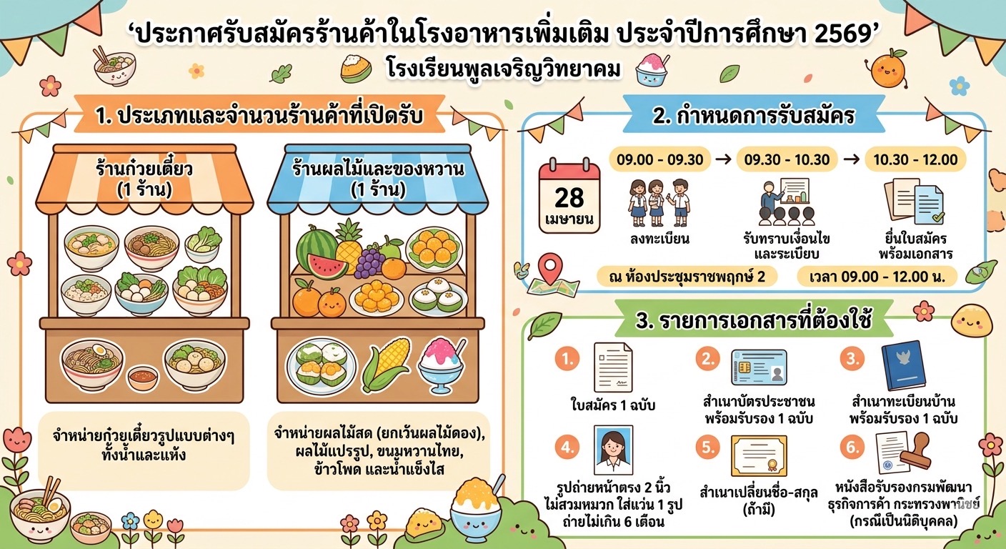 เรื่อง รับสมัครผู้เช่าพื้นที่จำหน่ายอาหารกลางวันในโรงเรียน ประจำปีการศึกษา 2569 (เพิ่มเติม ครั้งที่ 3)